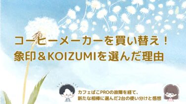 家電 【コーヒーメーカー・グラインダー買い替え】象印EC-MA60&KOIZUMI KKM-0400を選んだ理由 カフェばこPROが壊れた後、買い替えで選んだのは象印のコーヒーメーカー「EC-MA60」とKOIZUMIのグラインダー「KKM-0400」。使いやすさ・丸洗い・デザインの3拍子で選んだ理由を紹介します。 2025.10.20 家電