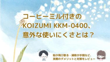家電 【レビュー】KOIZUMI KKM-0400の意外なデメリット|粉の飛び散り対策も紹介 コイズミの電動ミル「KKM-0400」を使ってみてわかったデメリットを正直レビュー。粉が飛び散る問題の対策方法も紹介します。 2025.10.21 家電