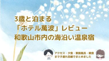 旅行・おでかけ 3歳と泊まる海沿いの温泉宿「和歌の浦温泉 萬波」宿泊記|和歌山市内で立地よし・子連れでも快適な1泊レビュー 和歌山市内の海沿いにある「和歌の浦温泉 萬波」に3歳の子どもと宿泊。半個室の夕食、洗い場が二つある家族風呂、無人ラウンジ、朝食の様子まで子連れ目線でまとめた体験レビューです。 2025.11.21 旅行・おでかけ