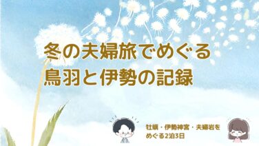 旅行・おでかけ 【伊勢夫婦旅】冬の鳥羽から伊勢神宮・夫婦岩へ|牡蠣と温泉を楽しむ2泊3日の旅 冬の鳥羽・伊勢をめぐる2泊3日の夫婦旅。牡蠣グルメ、伊勢神宮参拝、夫婦岩、そして家族に好評だった塩ようかんと“福カエル”の思い出を記録しました。 2025.10.24 旅行・おでかけ